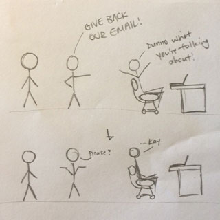 The badassery began with the Hackers (congrats, you're important enough to have your very own pronoun!). The time is Friday morning. Part way through their first period class, the Hackers decided they didn't want to do their online research anymore. So, obviously, they did what any bored Lynbrook student would do. Attempt to hack a friend's email account just to mess with them. Except the Hackers must've really been feeling the Spoons spirit because, they thought to themselves, why not hack the Goderators' (real) email account and mess with 265 people simultaneously!